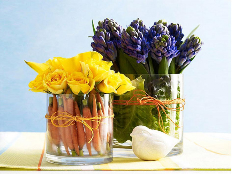 Для того чтобы привлечь внимание к вазе, наполните её яркой начинкой, либо сделайте фон, на котором она стоит, тёмным или ярким. В спокойной цветовой гамме вазы будут смотреться легко и гармонично. Для создания необычных эффектов в интерьере, можно использовать цветную воду, чтобы выделить вазу.